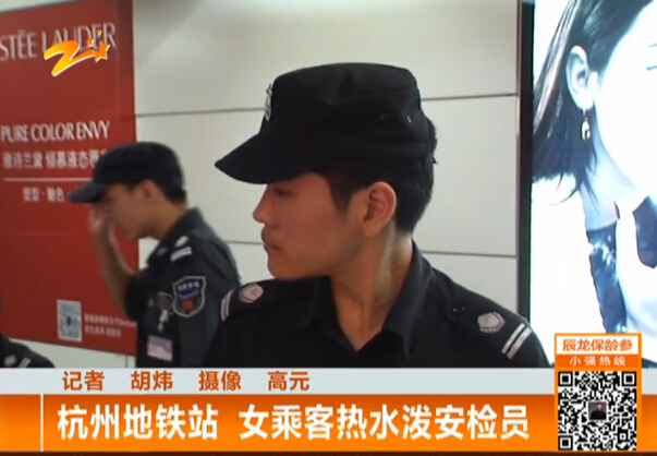 杭州地鐵站安檢機檢查站 女乘客潑熱水襲擊